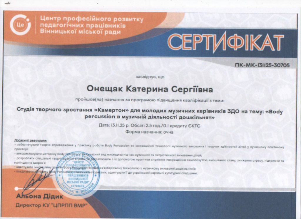 Підвище6ння кваліфікації: музкерівників ЗДО (КЗВО “ВАБО” 2025р